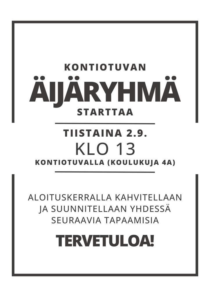 Kontiotuvan oma Äijäryhmä starttaa tiistaina 2.9. klo 13!
