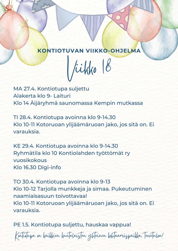 TO 30.4. Kontiotupa avoinna klo 9-13