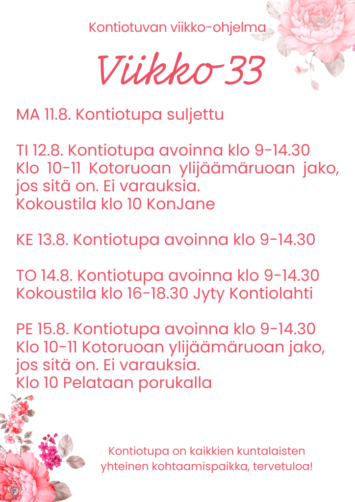 PE 15.8. Kontiotupa avoinna klo 9-14.30