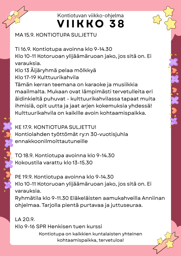 Kontiotupa on kaikkien kuntalaisten yhteinen kohtaamispaikka, tervetuloa!